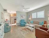 This two bedroom villa was completely renovated in 2025 and is located on the ground floor of the Siesta Sun private beach front. It has a screened lanai, and is a quick walk to our heated and gated pool. There is a Queen size bed and a Twin size bed in the first bedroom, and the second bedroom has a King size bed. There are flat screens TVs in the living room and both bedrooms.