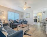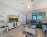 This one bedroom villa was completely renovated in 2025 and is located on the ground floor of the Siesta Sun private beach front. It has a screened lanai, and is a quick walk to our heated and gated pool. There is a King size bed in the bedroom and two Twin sleeper chairs in the living area. There are flat screens TVs in both the living room and main bedroom.